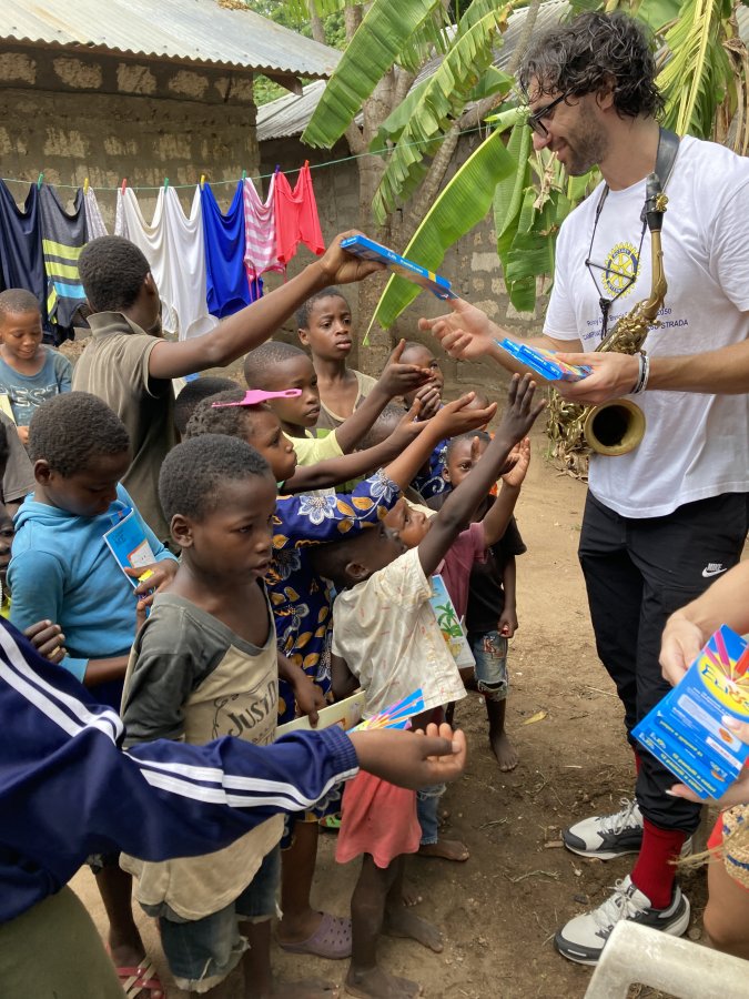 Ha emozionato la storia, raccolta durante la recente esperienza, di una mamma vedova che durante una delle passate edizioni aveva ricevuto un abitino da bambina, di quelli veramente belli Made in Italy, acquistato probabilmente per una cerimonia importante. Questa mamma dal dono ricevuto ne ha tratto una buona opportunità riuscendo negli ultimi anni a raccogliere qualche soldo per acquistare la farina necessaria a preparare la polenta (“ugali” si chiama in swahili) noleggiando il vestitino ad altre famiglie in occasione di cerimonie importanti e oggi entrando nella piccola stanza/casa l’abitino è esposto su un omino come bene prezioso e quasi ornamento dell’abitazione. All’edizione 2024-2025 del progetto ha partecipato anche un ospite importante, il musicista di fama internazionale Jacopo Taddei che ha portato il suo saxofono, per la verità uno strumento sconosciuto ai più, tra le baracche di Kibokoni. Con le quinte fatte dai panni stesi si è creato un imprevisto e improbabile palcoscenico all’aperto dove soprattutto i bambini hanno trovato particolarmente divertente cantare accompagnati dalle note del sax.