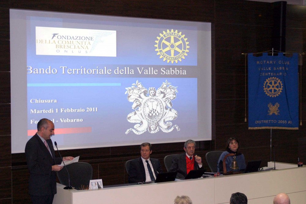 A fronte di 30 mila euro raccolti dal Club tra una dozzina di Comuni della Valle Sabbia, la Fondazione della Comunità Bresciana con il segretario Silvio Valtorta del RC Salò e Desenzano del Garda ha messo a disposizione altrettanti 30 mila euro per un totale disponibile di 60 mila euro da investire in progetti non profit sul territorio. Poiché i contributi potevano coprire al massimo il 50 per cento