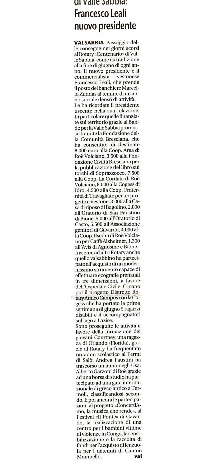 RC Valle Sabbia: Francesco Leali nuovo presidente